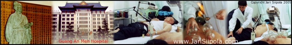 | Mitä akupunktio on? Zhen Jiu tarkoittaa neulaa ja moxaa. Lisäksi tähän ketegoriaan kuuluvat kuivakuppaus, Meihua, ja GuaSha sekä monet uudet vermeet. Kiinalaisen lääketieteen klinikalla näitä menetelmiä yhdistellään tarpeen mukaan. Akupunktiossa manipulodaan neulan avulla akupunktiopisteisiin kasautuvaa Qi-energiaa, ja siten säädellään elimistön toimintaa. Tämän tekee mahdolliseksi energiaverkostosta (meridiaanit, Jing luo) sen yhteyksistä sisäelimiin, sekä sillä sijaitsevista akupunktiopisteistä ja niiden vaikutuksista Kiinassa aikojen myötä koottu tieto. Itse manipulaatio tapa on myös vaikutuksen kannalta ratkaiseva. Akupunktiota ja "akupunktiota" Suomessa voi nykyään opiskella kiinalaisen lääketieteen teoriaa, tältä pohjalta on periaatteessa mahdollista hahmottaa potilaan häiriömalli ja suunnitella epätasapainoa korjaava hoito. Koska potilaat eivät kuitenkaan ole oppikirjoista, tarvitaan lisäksi pätevää kliinistä koulutusta (jota käytännössä voi saada vain Kiinassa), mikä on tuiki tarpeellista myös hoidon tekniikoiden osalta. Tällöin ollaan tilanteessa jossa teoria ja käytäntö kohtaavat oikealla tavalla ja akupunktiota voidaan soveltaa moniin käytännön tilanteisiin. WHO:n listauksen mukaan on yli 400 vaivaa ja sairautta joiden hoitoon se sopii. Länsmaissa kiinnostuttiin akupunktiosta 70-luvulla, kun Suomenkin TV esitti kuvaa akupunktio-anestesialla tehtävistä leikkauksista. Niitä peruja linee, että akupunktio mielletään meillä yhä lähinnä kivunhoidoksi. Suomessa myös jotkut lääkärit ja fysioterapeutit käyttävät akupunktiota kivun ja muutamien toiminnallisten vaivojen hoidossa. Akupunktio on siis saanut jonkinlaisen virallisen lääketieteen hyväksynnän, koska se näköjään toimii käytännössä. Menetelmän taustalla olevan filosofian samat tahot kuitenkin kuittaavat "uskomuksiksi", eivätkä siten ole yleensä kiinnostuneita opiskelemaan kiinalaista lääketiedettä (akupunktiota) syvemmin. Edelleen Suomessa toimii joitakin "Hand-Made-akupunktuurikkoja" vailla minkään oppisuunnan diplomia. Meillä on muutamia erittäin hyviä kiinalaisia lääkäreitä, mutta myös henkilöitä jotka eivät kotimaassaan saisi harjoittaa akupuktiota. |